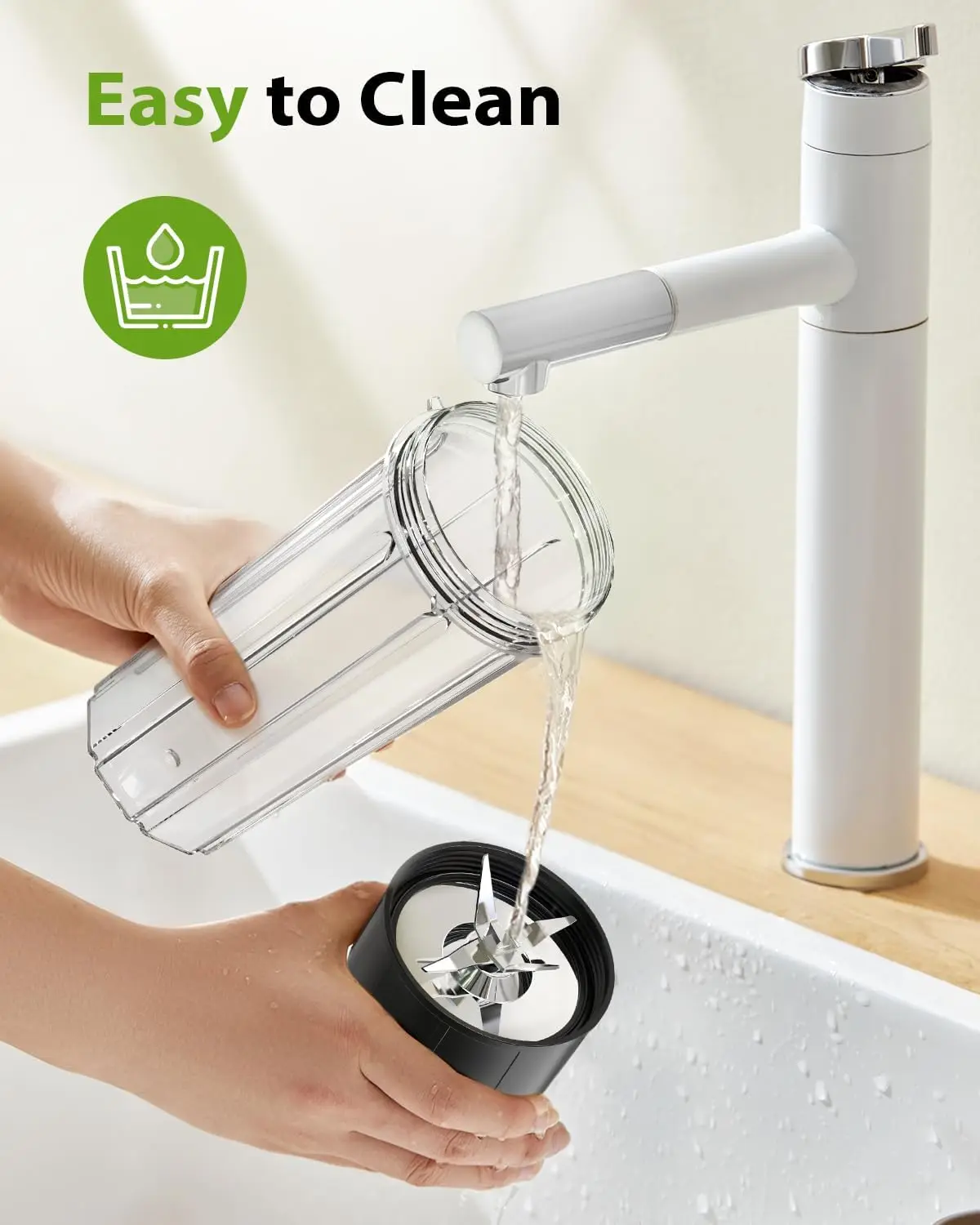 【Effortless Cleaning & Safety】Cleaning is a breeze! Our portable blender for smoothies is crafted with smooth surfaces, making it a breeze to wipe clean after use. But where it truly shines is its ability to withstand the cleaning power of your dishwasher, which can easily release your hands.