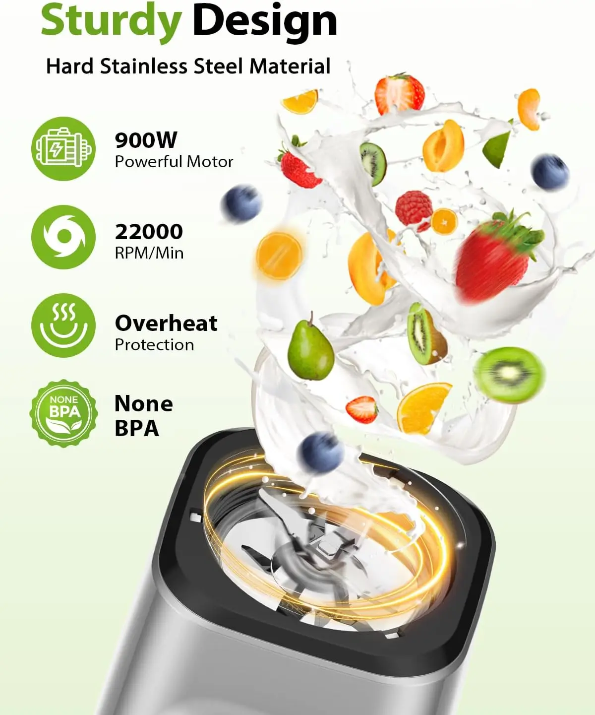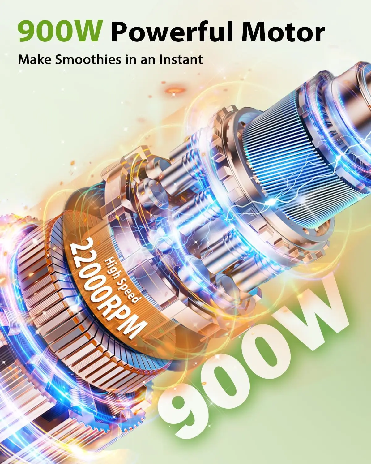 【Efficient Countertop Blender】Experience exceptional blending with our 900-watt motor blender that reaches up to 22,000 RPM.This robust smoothie blender effortlessly pulverizes ingredients, ensuring your favorite smoothies, shakes, baby food and more which are ready in a flash. Say goodbye to lengthy blending sessions and hello to fresh, delicious creations in seconds!